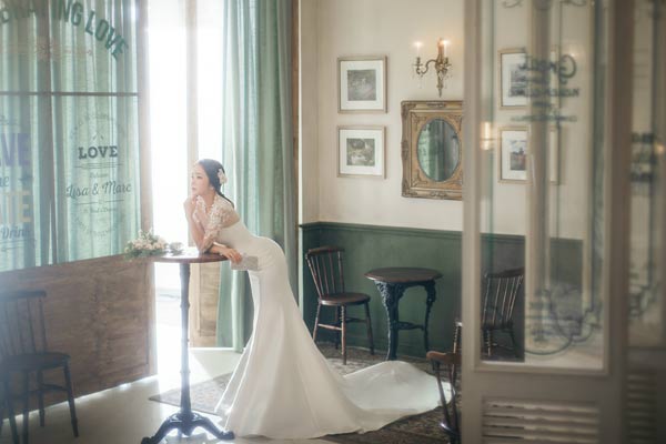 利用单纯(Simple)、自然(Natual)、古老(Vintage)的摄影棚的感觉,尽量自然地表现出新郎新娘原来就可爱而美丽的模样。
